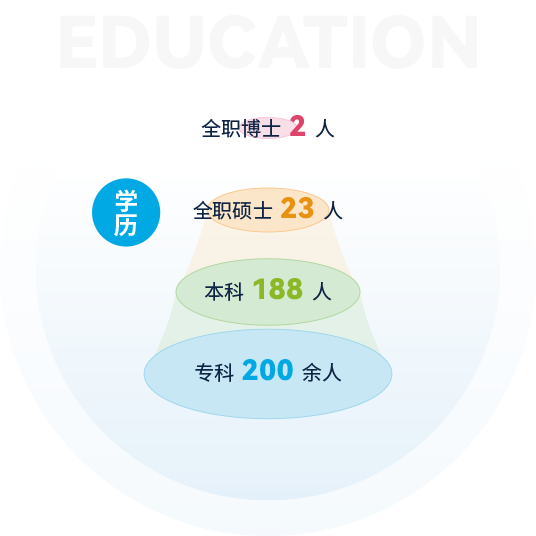 截止2024年,公司擁有各類人才400余人,其中全職博士2人,全職碩士23人,本科188人,???00余人,注冊會計師12人,專利代理師9人,軟件工程師7人,技術(shù)交易經(jīng)紀(jì)人5人,南京企服中心等各類機(jī)構(gòu)外聘專家6人,公司還和南京大學(xué)、東南大學(xué)、南京農(nóng)業(yè)大學(xué)、南京信息工程大學(xué)、南通大學(xué)、江蘇開放大學(xué)等建立了良好的合作關(guān)系。